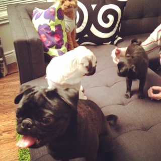 ボストンテリアを飼う一歩手前でパピー時代のナナさんに会い、パグに恋をしてしまったという経緯あり。ホントにね、ナナさんに会った翌日からパグ探しを開始していた2人です。