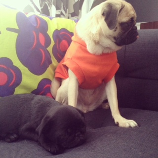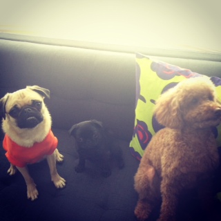 ナナちゃん、ジャズちゃん、堂々とお昼寝・・・すごいパグちゃんだ~。