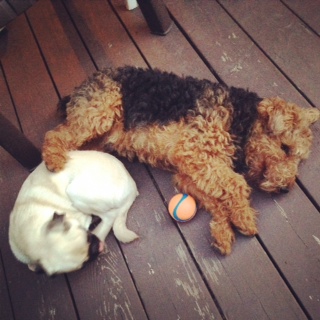 さすがに午後中たくさん遊んだわんこたち、どっと疲れが出たようです。