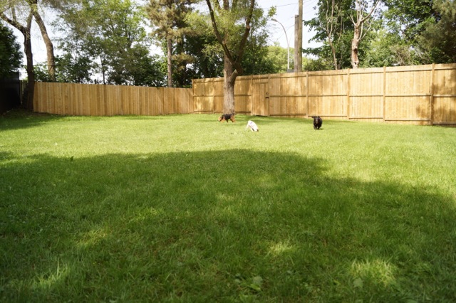 ドッグランだと日陰がないところが多いでしょ? だからたくさん木が茂っている裏庭の方が、夏はいいなーと思いました。