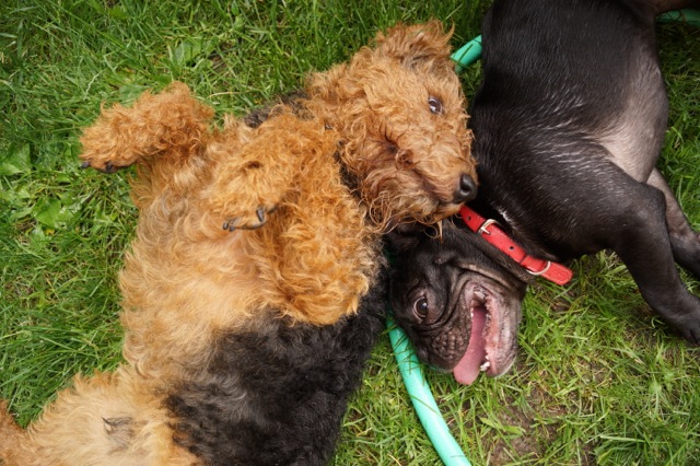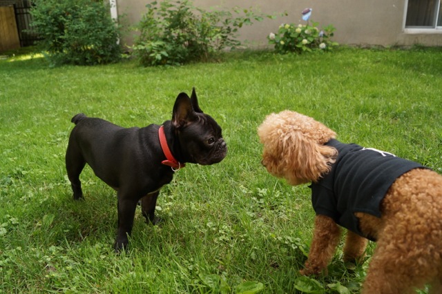 びびりなSchatzieさんもMr.くんとはなんだか大丈夫なようですし、Yogiとは芝生に背中すりすりの遊びで盛り上がっておりました。