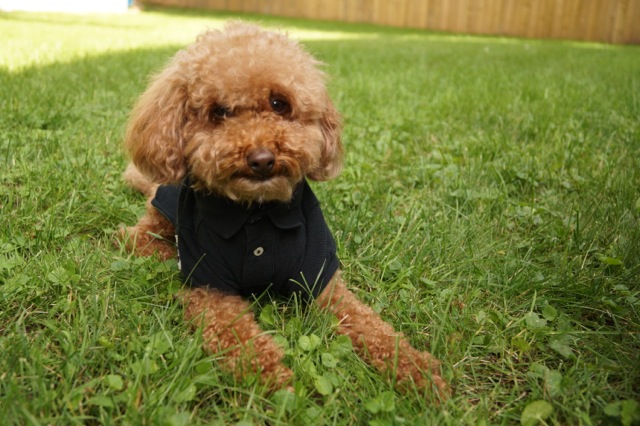 天才シャイボーイ、トイプードルのSchatzieさん(オス、4歳)。