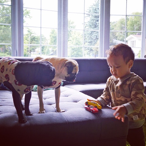 甥っ子2号くん、この日は一度にベストフレンドが3人増えました。わんちゃんたちも、新しいオトモダチが増えてよかったネ!