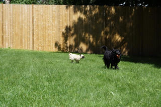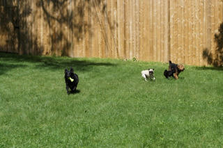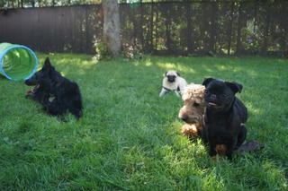 やっぱり思いっきりみんなで走ると、わんこも自然と笑顔になりますね~。ナナさんは芝生の雑草を食べるのに必死な瞬間もありましたが(汗)