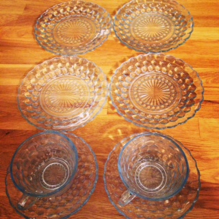 これで、自宅のバブルシリーズ・サファイヤブルーはデザートプレート4つ、カップ&ソーサー2客になりました。もちろん、すべてスリフト勝利品ですョ。
