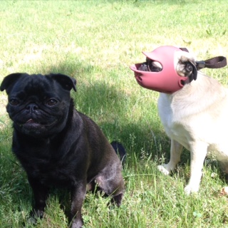 こちらで購入したマスクがあるんだけれど(それも爆笑もの汗)、顔のところがメッシュになって覆われていてナナさんが嫌がるのね。日本でも(鼻ぺちゃ犬用に)グルーマーさんが実際使っているのも確認済みで、顔のところにカバーがないからいいんじゃないの?というわけで・・・。