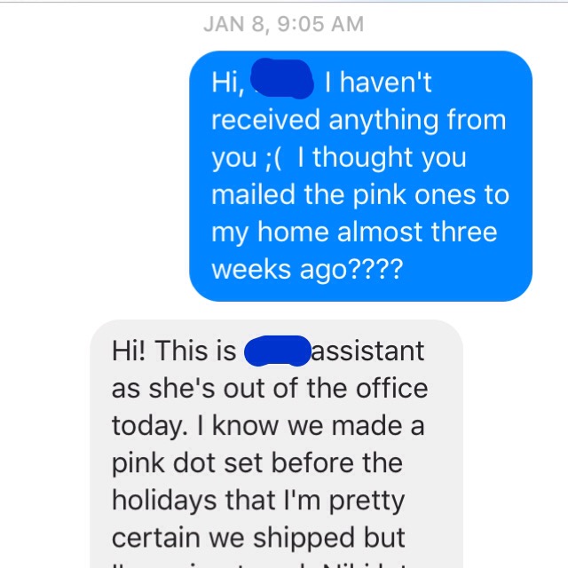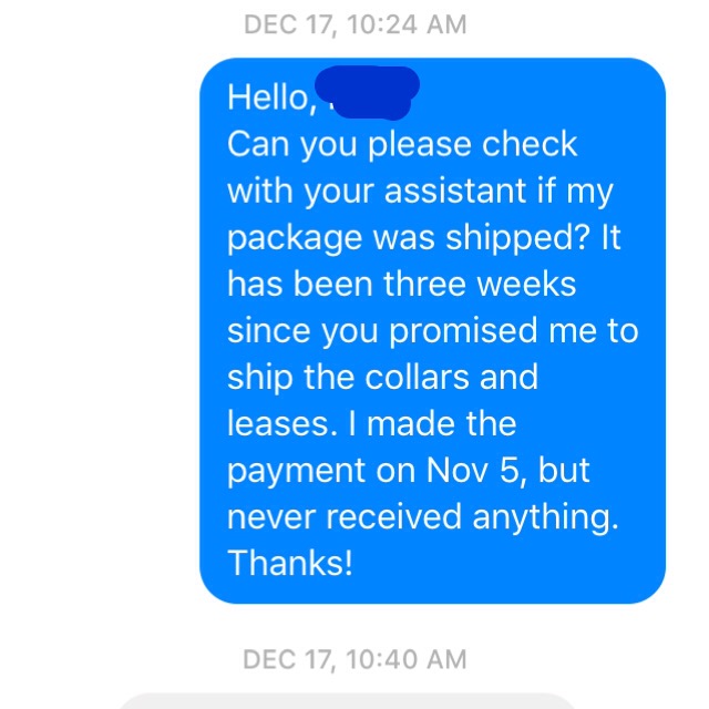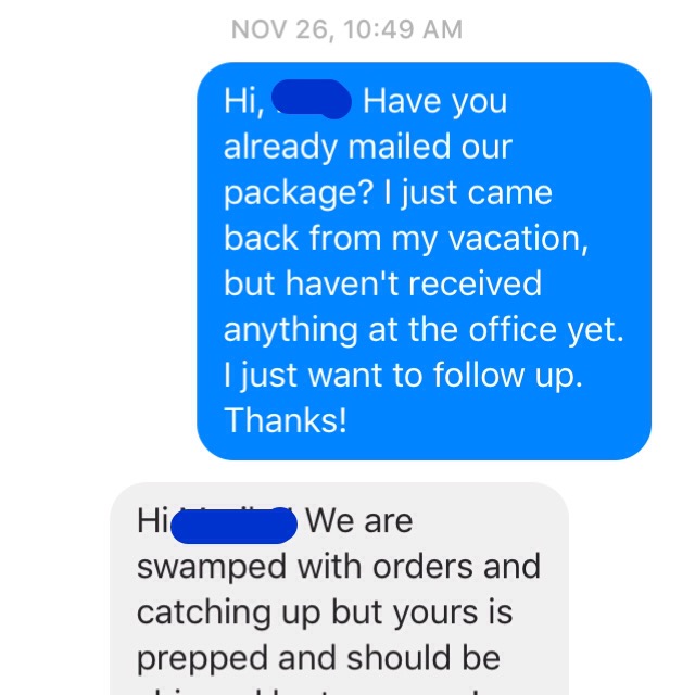 (通常オーダーは数日で届くところ、10日ほど待っても荷物なし。)