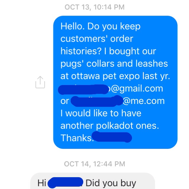 飼い主よりフォロー。追跡番号を送ってもらえるようリクエスト。
