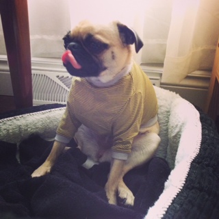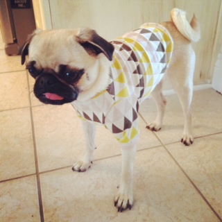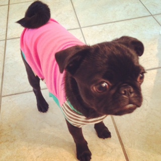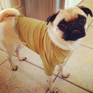 Tシャツは伸縮性のある生地なので、パグ座りもなんのその。