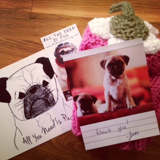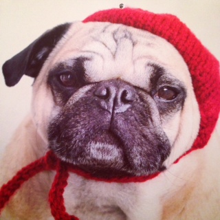 このショップは、ジェシカさんがすべて手作りしたニットを(帽子とかお洋服とか)販売してるんです。彼女はジェームスディーンとリンゴという2匹のレスキューパグちゃんを飼っていて、ショップのモデルはこの2匹です。いつ見てもかわいい~。ジェシカさんもかわいい~。