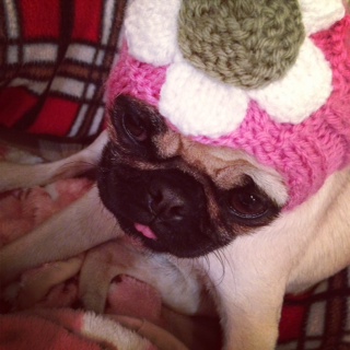 寒がりのナナさんに、ピンクのデイジーハットを購入してみました。
