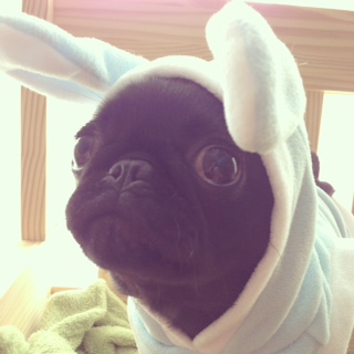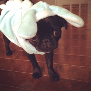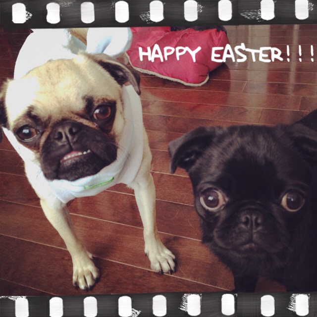 パグズ用エッグハントの中身はやっぱりおいしいオヤツですかね。
