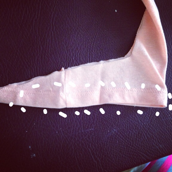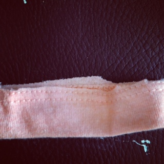 お尻側のTシャツ部分に重ねて、少しだけ(この後からくっつける部分)を引っ張りながらジグザグ&直線縫いをすることで、出来上がりがキレイになります。