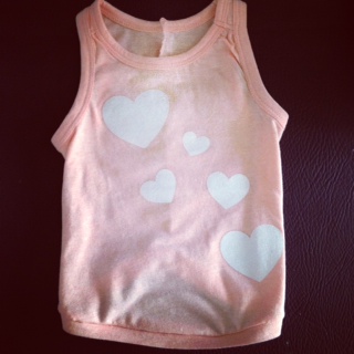 飼い主は、Old Navyのタンクを使いました。ナナさん(5.7キロ)は18〜24ヶ月、ジャズ子(4.4キロ)は12〜18ヶ月がぴったりです。ちなみに、お値段1枚6ドルほど。