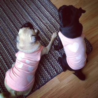 このリメイク方法はとても簡単な上に、かなり低予算でオトモダチやパグ兄弟とおそろいのお洋服を作る事ができますョ。オフ会なんかで、みんなが同じお洋服着用なんて、想像しただけで鼻血の可愛さですね (*ノェノ)キャー