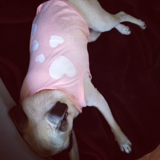 このタンクトップは伸びのよい生地なので、パグズもかなり着心地がよさそうでした。