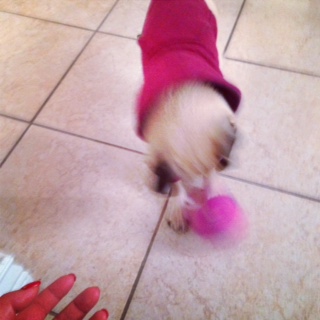 このおもちゃ、ナナさんのフードを購入するショップでサンプルとして転がっていたところ、ナナさんがびっくりするくらい1人で遊んでくれて・・・。ナナさんにも自宅用にと購入しました。(ナナさん、なかなか一人では遊んでくれません)