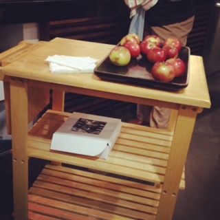 ショッピング中はお腹が空くよね!ということで、シャンパンやカップケーキ、りんごなんかがワゴンで運ばれてきます。