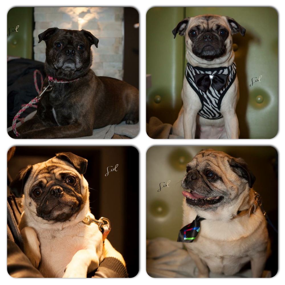 (右上)ゼブラプリントのハーネスはGeishaちゃん。飼い主さんは、モントリオール・パグクラブのオーガナイザーさんですョ。
