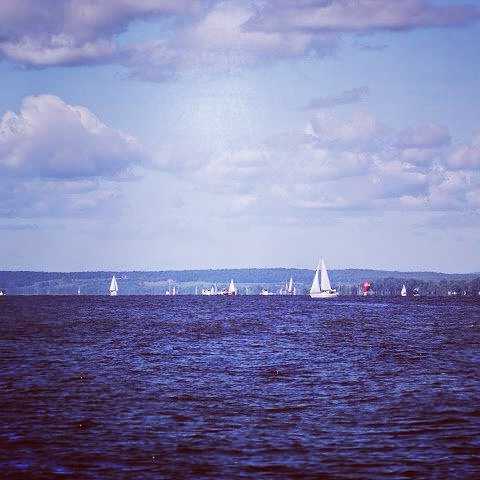 甲板に出ると風がとても気持ちがよく、たくさんのヨットも見えました。