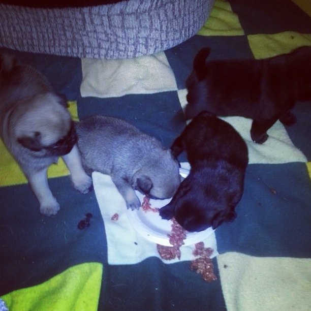 だから、ちびパグちゃんたちもドライフードではなく生肉を食べます。