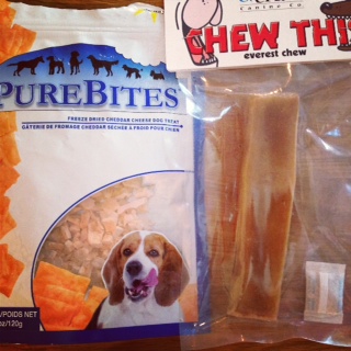 フリーズドライチェダーはトレーニングのご褒美に、チーズスティックはChew Treatとして使っています。