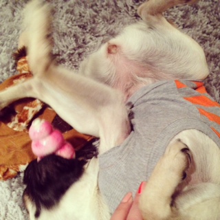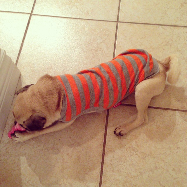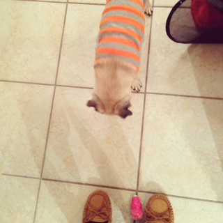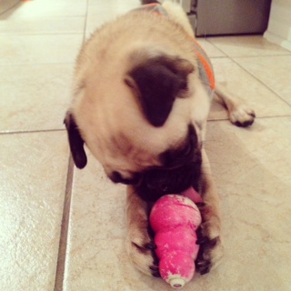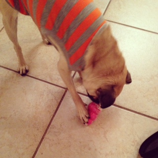 Kongにクッキーを入れてあげると、中身を出そうとがんばります。