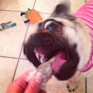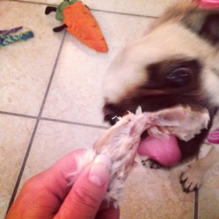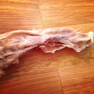 飼い主が手を離すと、ナナさんこのまま飲み込んでしまいます。しかし、自力では噛み切る事が不可能な模様です。ごめんよ、ウサギさん 。゚(゚´Д`゚)゜。ウァァァン ゴミ箱へ消えました・・・。