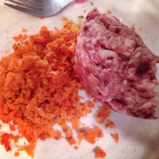 この日のメニューは、にんじんとターキー&内蔵ミックス。