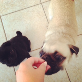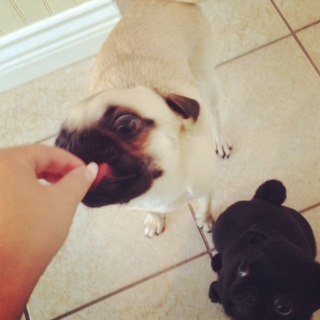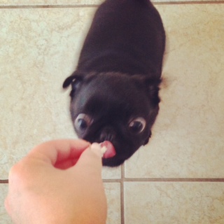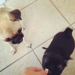 頑張った爪切りのあとは、サロンの2階にあるドッグカフェでおやつのご褒美だよ。
