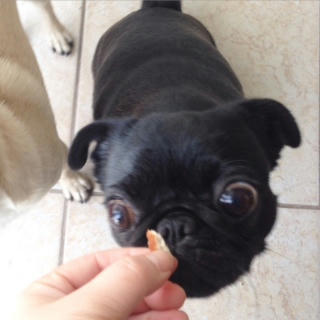 パレオ・パンケーキはものすごくおパグのツボだったらしく、おかわりちょーだいの催促が止まりません。