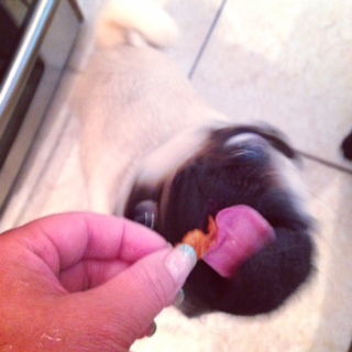 しかし、サーモンから出る自然の脂とは言え非常にテカテカしており、パグズへの与え過ぎには気をつけないといけません。(以前に脂ののったサンマをあげて、ナナさんげーでした・・・)