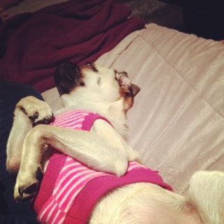この日は左手でSweet Potato Chew(さつまいもの乾燥したおやつ)を持ち、右手はケータイでメールをしていたら・・・小さくなったおやつにおバカな飼い主は気づかず((((。iдi。)))((((。iдi。)))((((。iдi。))) 極小の乾燥さつまいもを食べようと試みたナナさんは、勢いあまってネイルをがぶっと食べてしまいました。