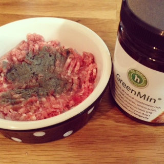 朝だけ、わんこ用の青汁パウダーみたいなのをふりかけます。(これはオプションなので忘れればそれでよし)