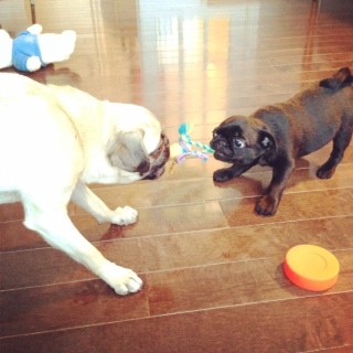ジャズミン、毎日すくすく成長しています。だんだんお顔も、パピーからパグに近づいているような???ちょっと寂しいけれど、うれしいです。