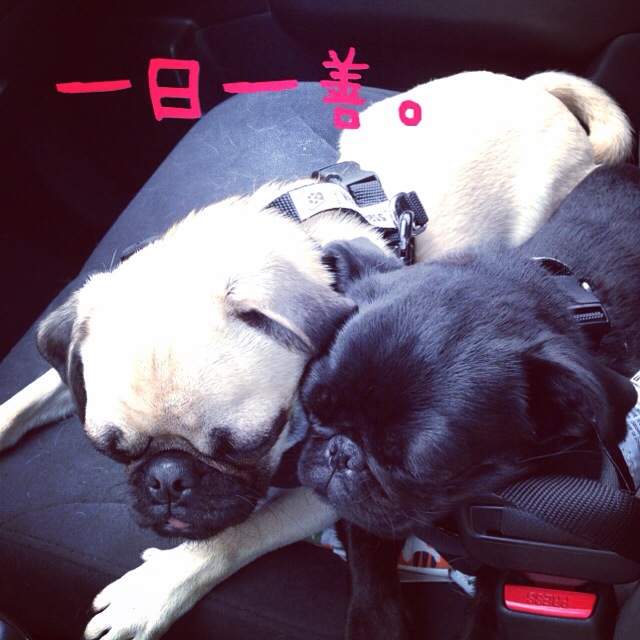「犬が後部座席にいるからー」ってチェックしたら、犬?犬?犬?どこに???え・・・豚?犬?これ???みたいな。女の子、おパグを見るのは初めてだったみたいです。