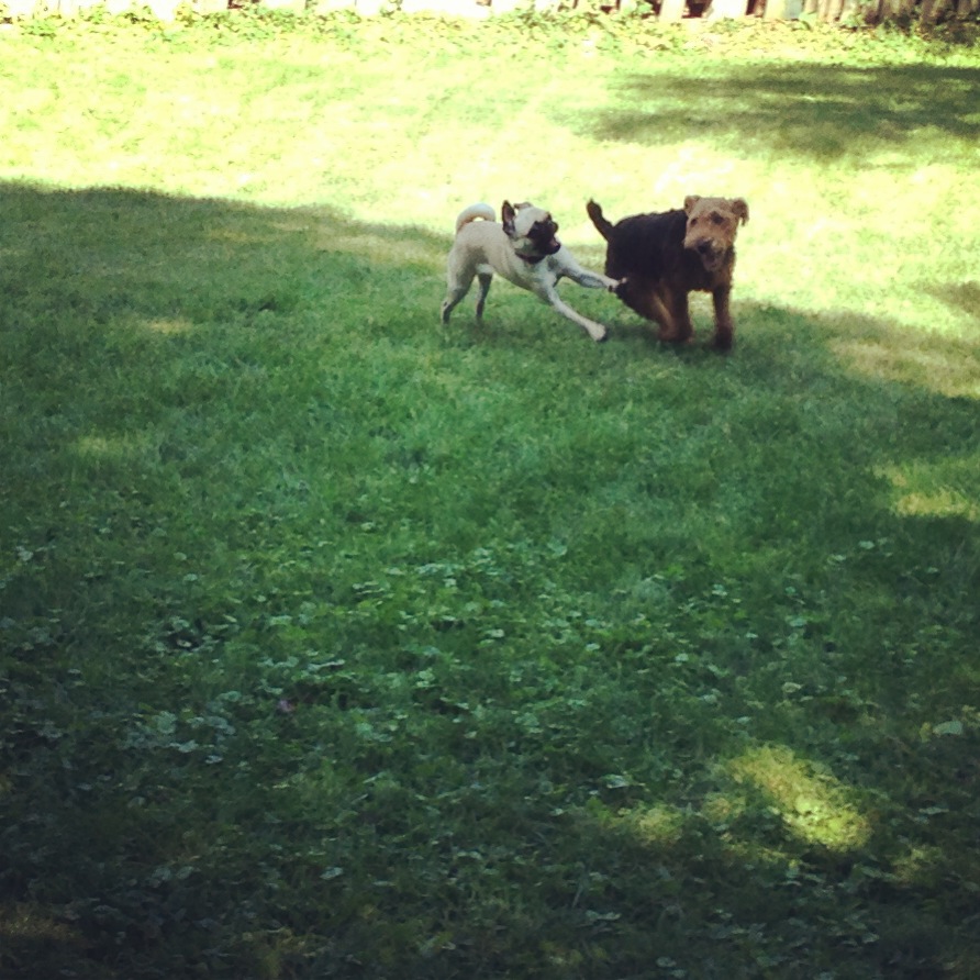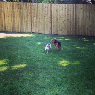 というわけで、我が家はあんまりドッグランへは行きません。ナナさんをオトモダチと遊ばせるのは、もっぱら自宅のバックヤードです。