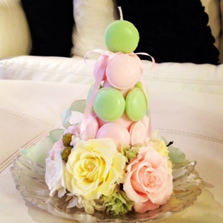 マカロンの部分がキャンドルで出来ているのですが、勿体ないので火は灯さないと思われます。