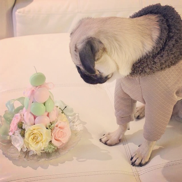 完成した作品のお写真を撮ろうとしたところ、なぜかナナさんがすっ飛んで来ましたよ。大丈夫、これは本物のマカロンじゃないからさ・・・ナナさんに秘密で食べようとしていませんから。