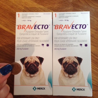 ブラベクト(ノミ&マダニ駆除のお薬)。おパグさんのパッケージがイケてます。(