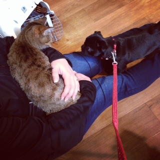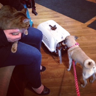 ジャズミンは吠えられないと大丈夫みたいです。待合室の反対側でコリーの男の子がものすごーーく吠えていて、ジャズミン威嚇してました(でも鳴き声がきゅんきゅんしてるので威嚇できてない)。ナナさんは吠えられても、じーっと耐えるタイプなんですよ。よいおねえさんです!