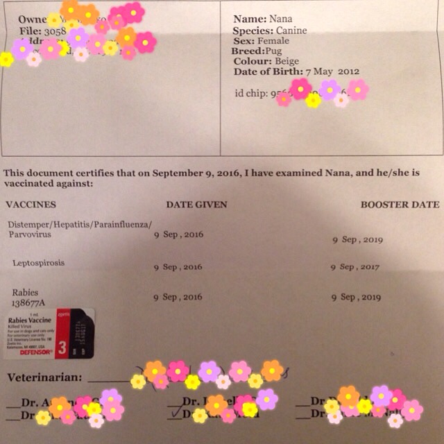 狂犬病とディステンパーは3年に一度ですが、レプトスピラ・混合ワクチン( 犬伝染性肝炎、パラインフルエンザ、パルボウィルス) は1年に一度のサイクルです。そして、今年はすべての予防接種が重なりました。