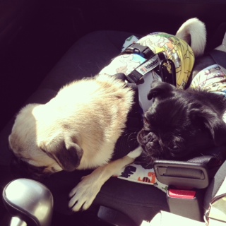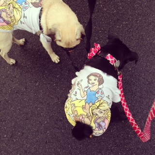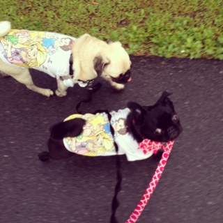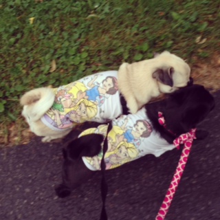 2人並んでのヒールウォーク、ちょこちょこと飼い主に着いて来る姿が可愛いです。ご近所のおじいちゃんからも「パグ・パトロール中だね!」と声をかけられました。