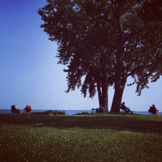 やっぱりお天気のよい日に、みんな考えることは同じだなぁ。ピクニック中のファミリー、魚釣りを楽しむおじさんたち、読書&お昼寝中のマダムたち、わんこ連れのカップルなどなど、芝生はとても賑やかでした。