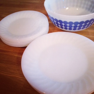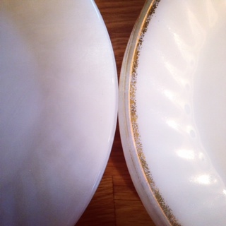 数分擦れば、ディナープレート4枚、サラダプレート6枚がただのホワイトスワールへと変身です〜!まだまだあるので(しかも数枚は擦ってもなかなか落ちないし)、こつこつと作業を続けたいと思います。