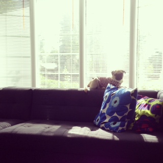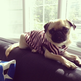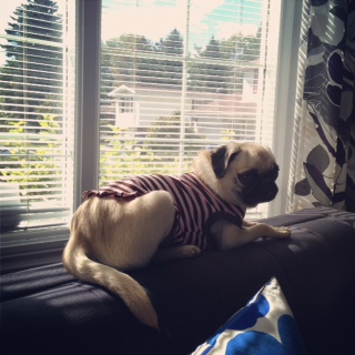うちのパグも、よくソファーの上で寝てたり、外ながめてたな。