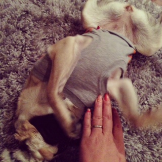 Belly rubをやって〜とナナさんもごろんするのですが、なぜか暴れます。おもちゃを食べながら暴れます。しかも、暴れ方が尋常じゃあありません。(飼い主がやめると、またやって〜とごろんするので好きなんだと思いますが・・・)