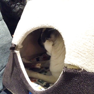 ジャズミンのコソ食い場所はケージ内ですが、ナナさんはドーム型ベッド内でBeef chewをガジガジしていることが多いかな。