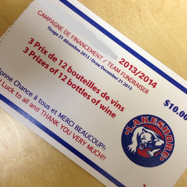ワインは保護者の寄付品らしいので、印刷代数百ドルが経費ということになります。(チケットを売るのもちびっこ&保護者なので経費ゼロ)チケットは1枚10ドル、それを数百枚販売しているので、このチームファンドレイジングで一度に数千ドルの収入が生まれます。