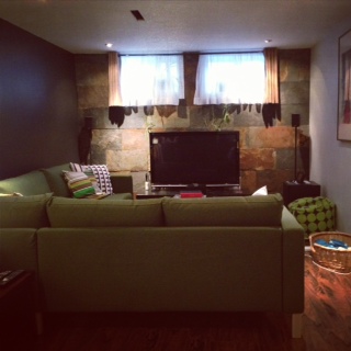 ベースメントのファミリールーム用に、新しいソファを購入しました。(